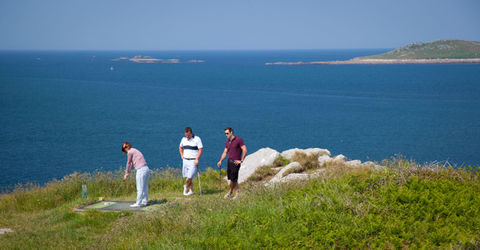 The Isles of Scilly golf course occupies the north west coastline of St Mary's and was carved, largely by hand, from cliff top scrub by farmers and a golf mad Dr Brushfield. It was designed by Horace Hutchinson, opening in 1904.